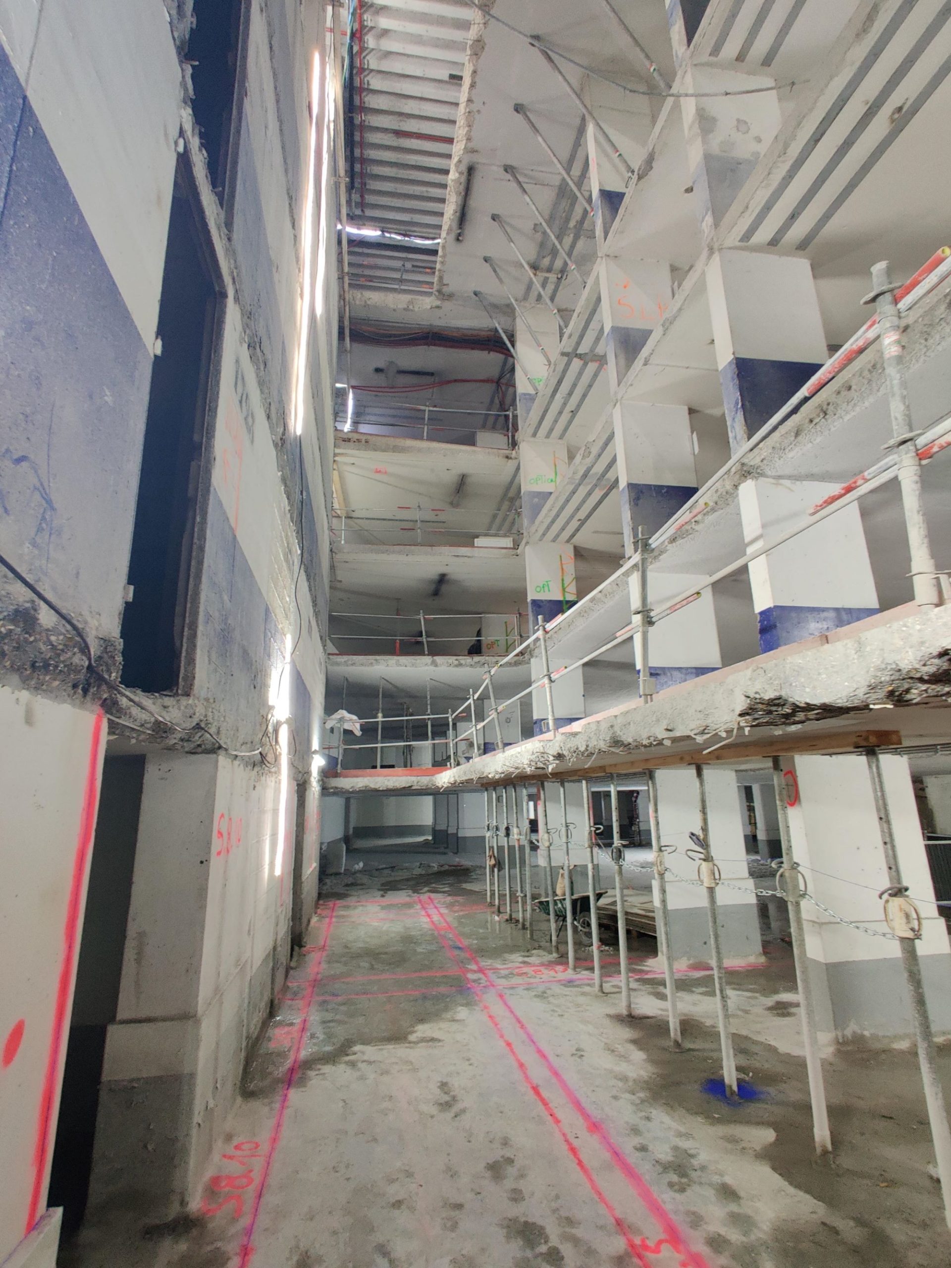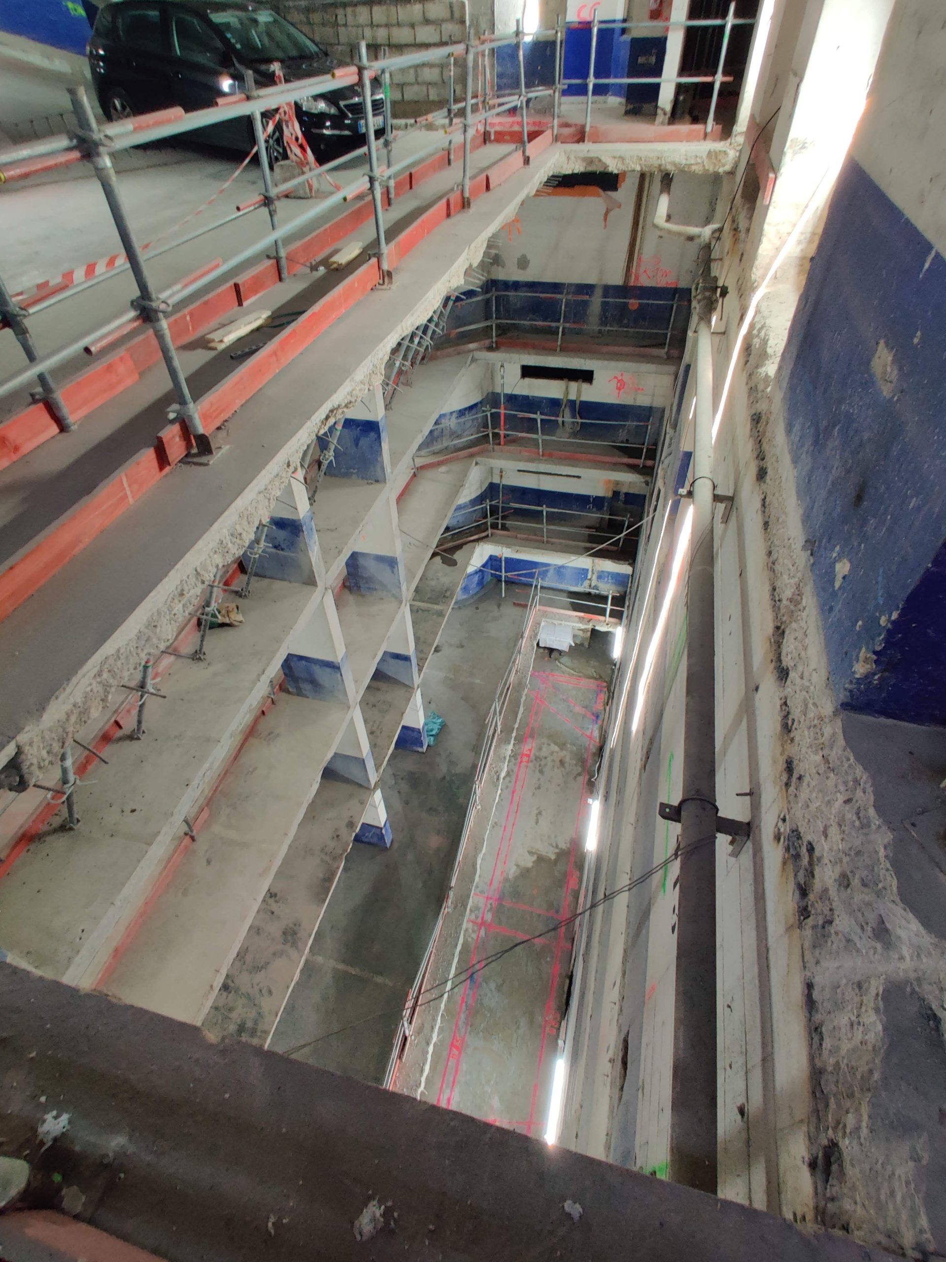 Réhabilitation du parc de stationnement, dans le but de le moderniser et le transformer en un entrepôt dédié à des activités de colisage et stockage